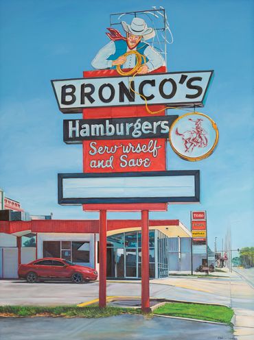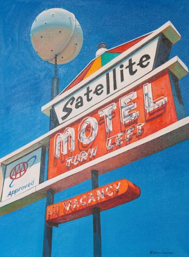 I use my camera to capture images of local street scenes, neon signs and nature with dramatic color and light. I use those images to paint all the things that attract me and I’m currently working on a series of vintage neon signs, toys and candy. I want to paint fun things that bring back great memories of my childhood. I love the process of painting detail, texture, light and color. I bounce around from painting to painting. It satisfies my need to make things!